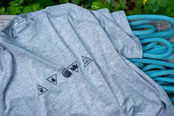 Jak si představuješ ideální triko? Pohodlné, prodyšné, z příjemného materiálu a taky nemačkavé, ať se o něj nemusíš tolik starat – takhle nějak vypadají naše představy. A taky tohle triko. Hledali jsme dodavatele, zkoušeli jsme a propotili dost kousků. Na vítěze jsme sublimační metodou natiskli elementy, aby tě doprovázely na všechna tvoje dobrodružství.